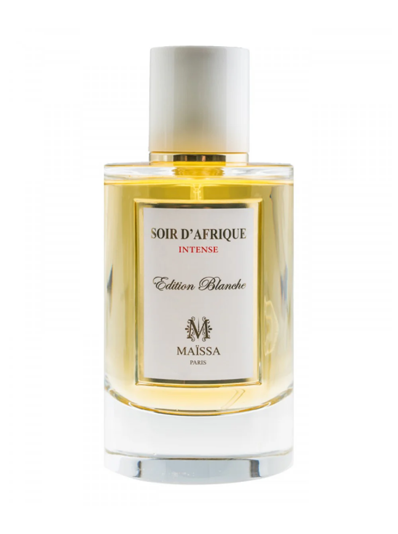 Un parfum mixte de la collection « Édition Blanche » de Maïssa Paris, inspiré d’un « soir en Afrique », mêlant fraîcheur marine et bergamote en tête, encens et épices au cœur, et vanille/ambre en fond — proposition boisée, épicée et élégante.