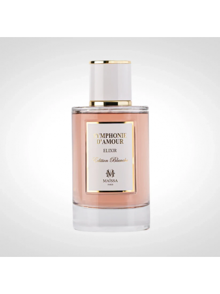 Un parfum unisexe de Maïssa Paris, version «Elixir» de la gamme Symphonie d’Amour : fruits et agrumes en tête, jasmin/anis/bois blanc au cœur, sur une base vanillée‑ambre‑musc — l’allure romantique, intense et raffinée.